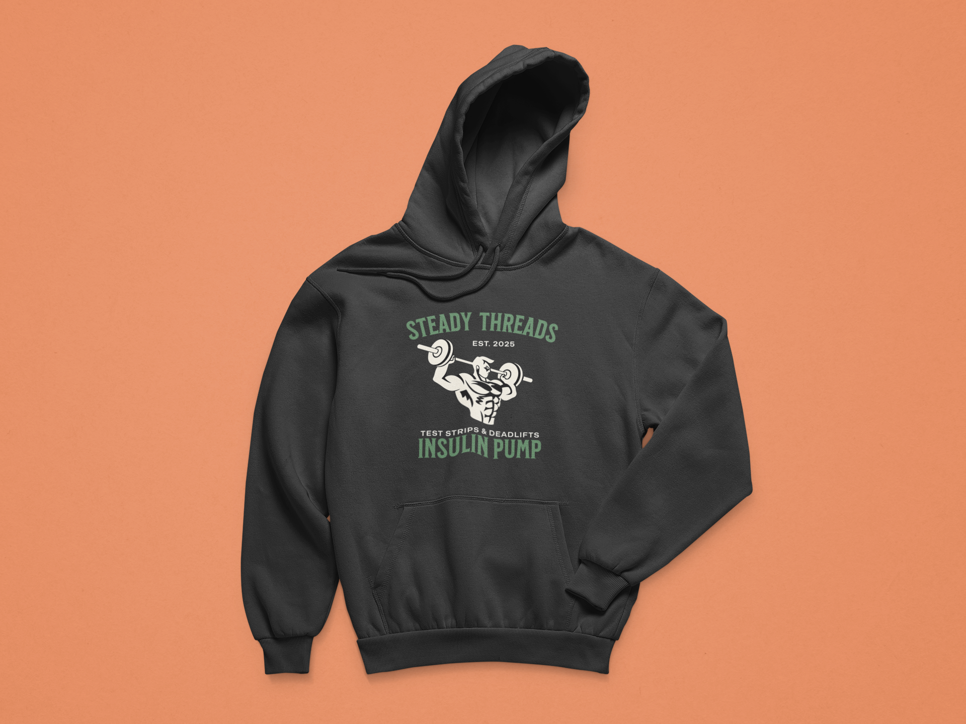 Strength comes in many forms. The Insulin Pump Thread features a bold black graphic with a gym figure lifting weights and the playful double entendre “Insulin Pump.” It’s a nod both to the medical device that supports so many in the diabetic community and the muscle pump you earn in the gym.