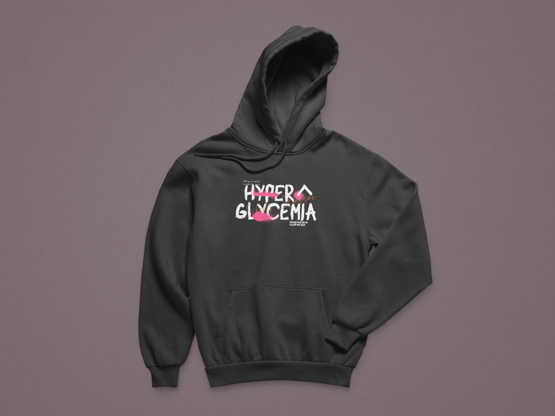 Turn awareness into art. The Hyperglycemia Thread features bold graffiti-style lettering across a sleek black background, giving a streetwear edge to an often overlooked struggle. Words like “Silent Stressor” are woven into the design to shed light on what hyperglycemia really means—an invisible battle that deserves recognition.